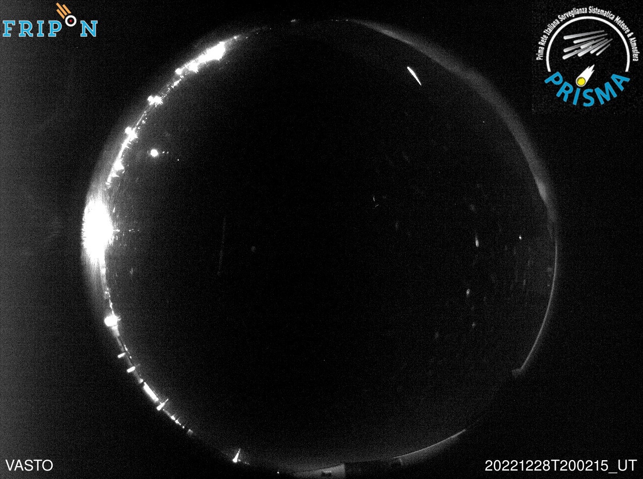 Il bolide del 28 dicembre 2022 alle 20:02 UT ripreso dalla camera PRISMA di Vasto in provincia di Chieti in Abruzzo (Crediti: PRISMA).