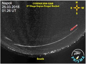 Il rientro del terzo stadio del Soyuz-Fregat immortalato da PRISMA