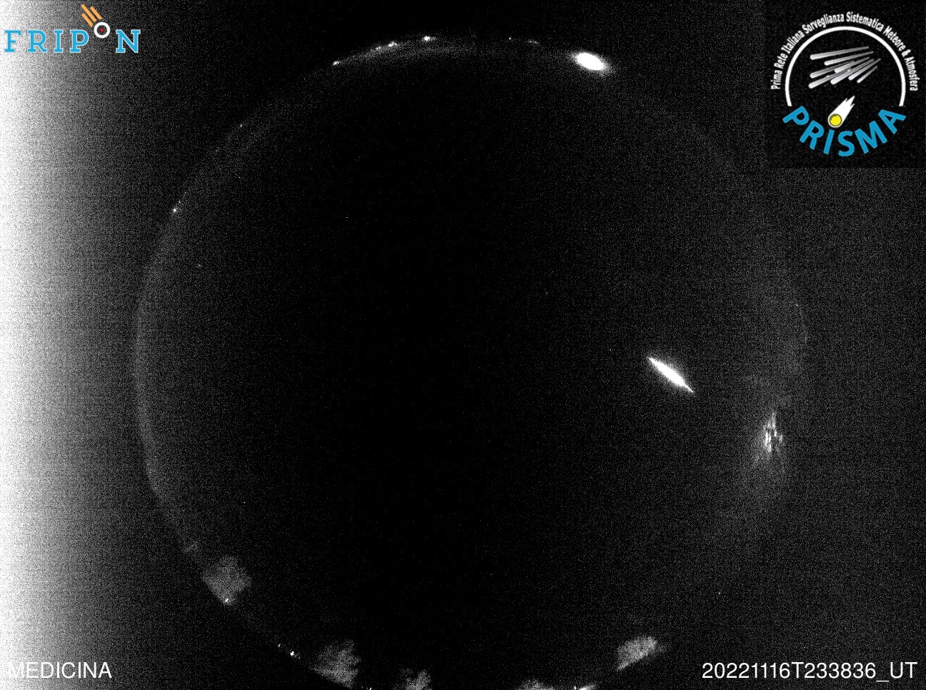 Il bolide del 16 novembre 2022 delle 23:38:36 UT ripreso dalla camera Prisma di Medicina (BO).