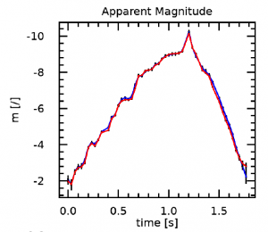 Il grafico della magnitudine del bolide delle 02:18 del 14.12.2020.