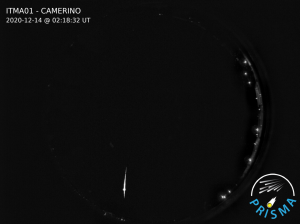 alle 18.10 di domenica 13 dicembre ben 6 camere della rete Prisma dislocate nel Centro Italia (Roma, Montelupo Fiorentino, Chianti, Piombino, Perugia ed Amelia) hanno catturato un bolide di magnitudine – 4.5 (quota iniziale di 100 km, quota finale di 70 km, durata circa 4 secondi), osservato anche da alcuni osservatori occasionali.
