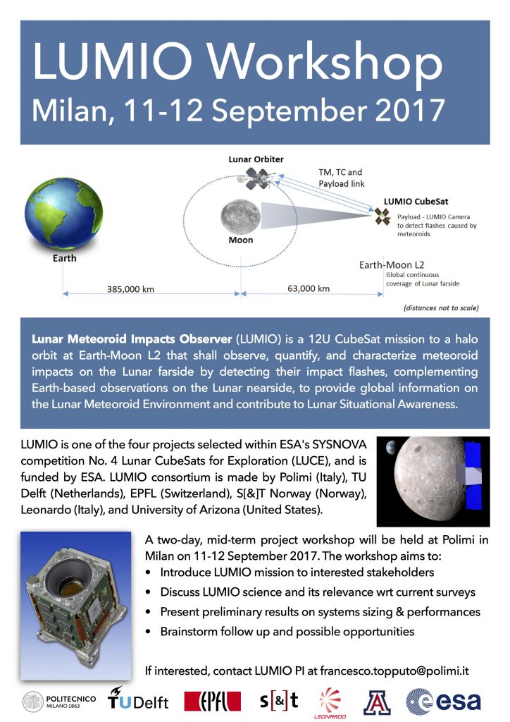 Il Dipartimento di Scienze e Tecnologie Aerospaziali è capofila di un consorzio che ha proposto la missione LUMIO: Lunar Meteoroid Impact Observer. Il progetto LUMIO si prefigge di usare un CubeSat (i.e., un satellite di piccole dimensioni) posto in un’orbita halo per osservare e monitore gli impatti da meteoroidi sulla superficie lunare.